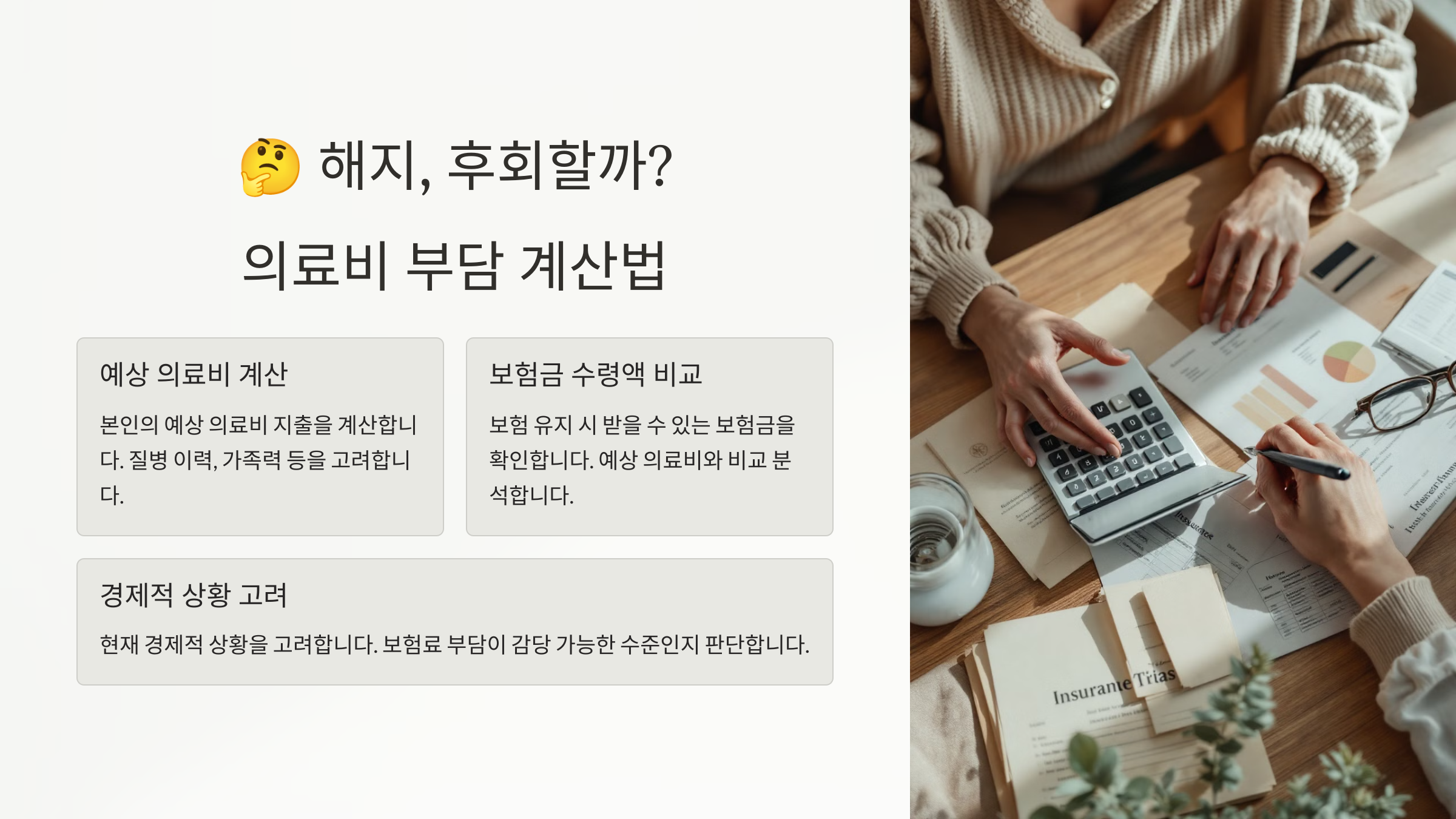 📌 **다음 섹션 계속 이어집니다!** 🤔 해지하면 후회할까? 의료비 부담 계산법을 살펴볼까요?